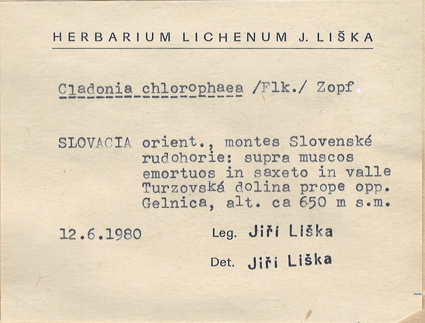 - Herbarium Lichenum J. Liška