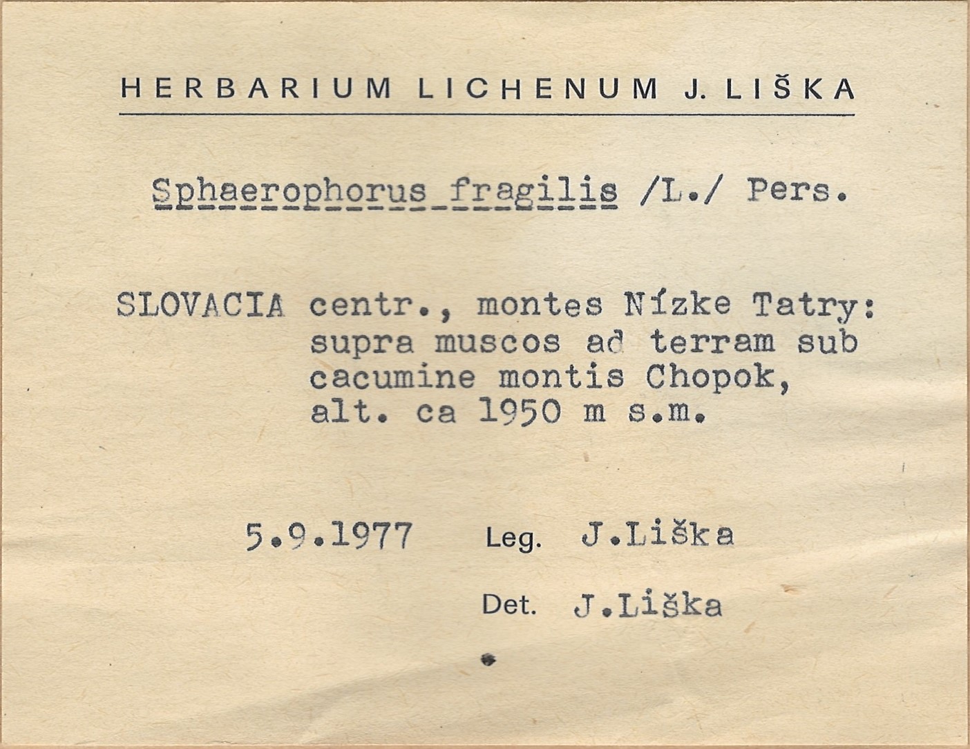 - Herbarium Lichenum J. Liška