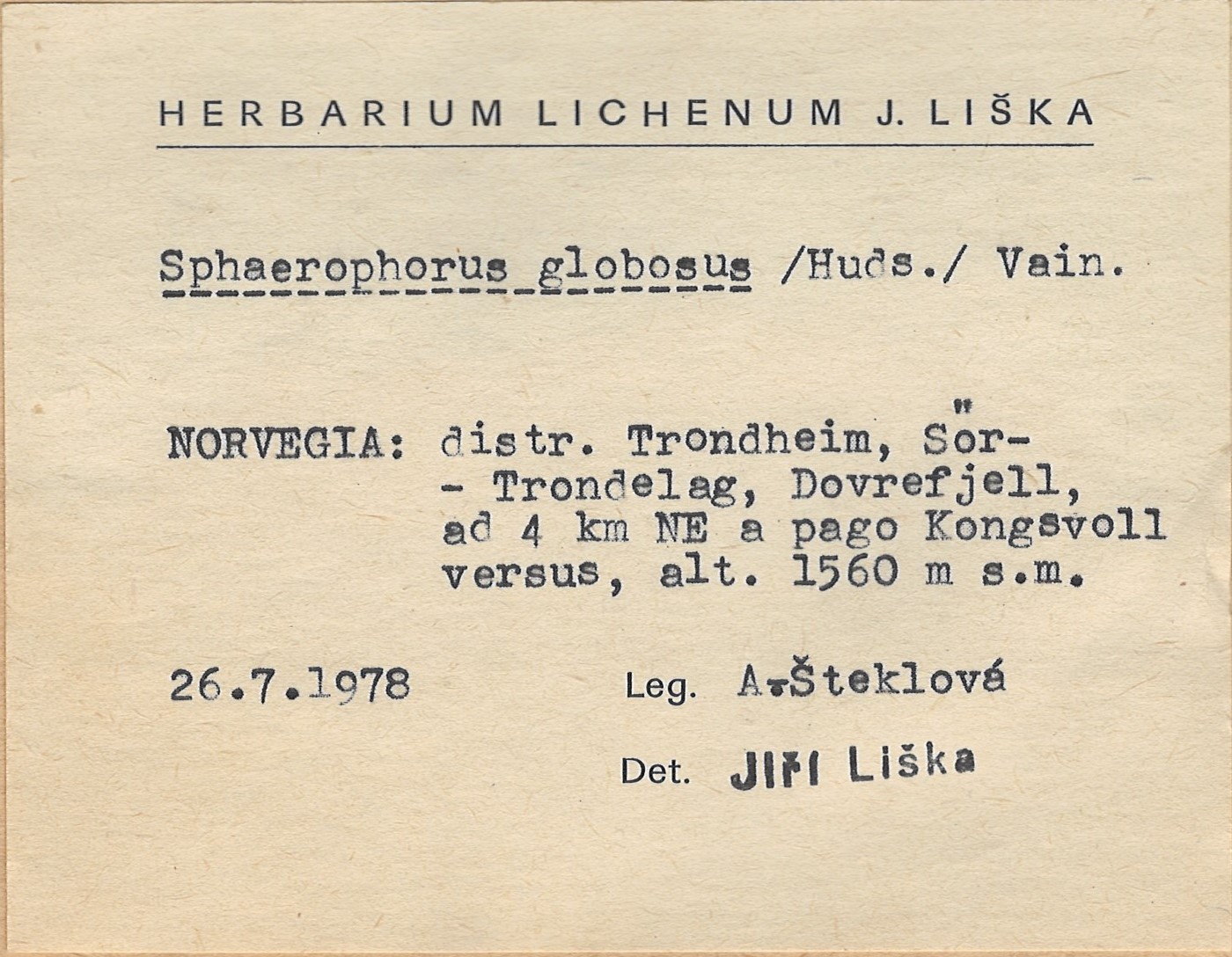 - Herbarium Lichenum J. Liška