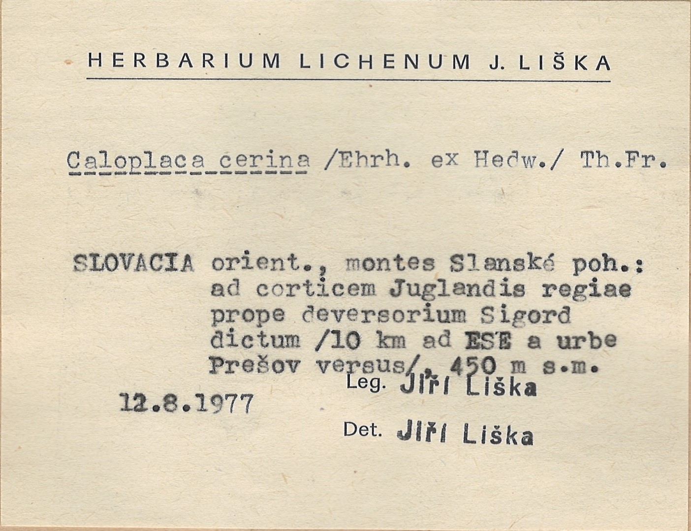 - Herbarium Lichenum J. Liška
