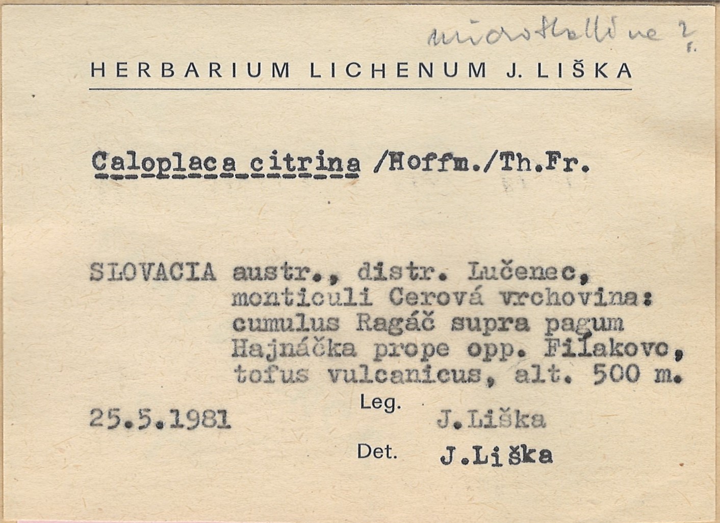 - Herbarium Lichenum J. Liška