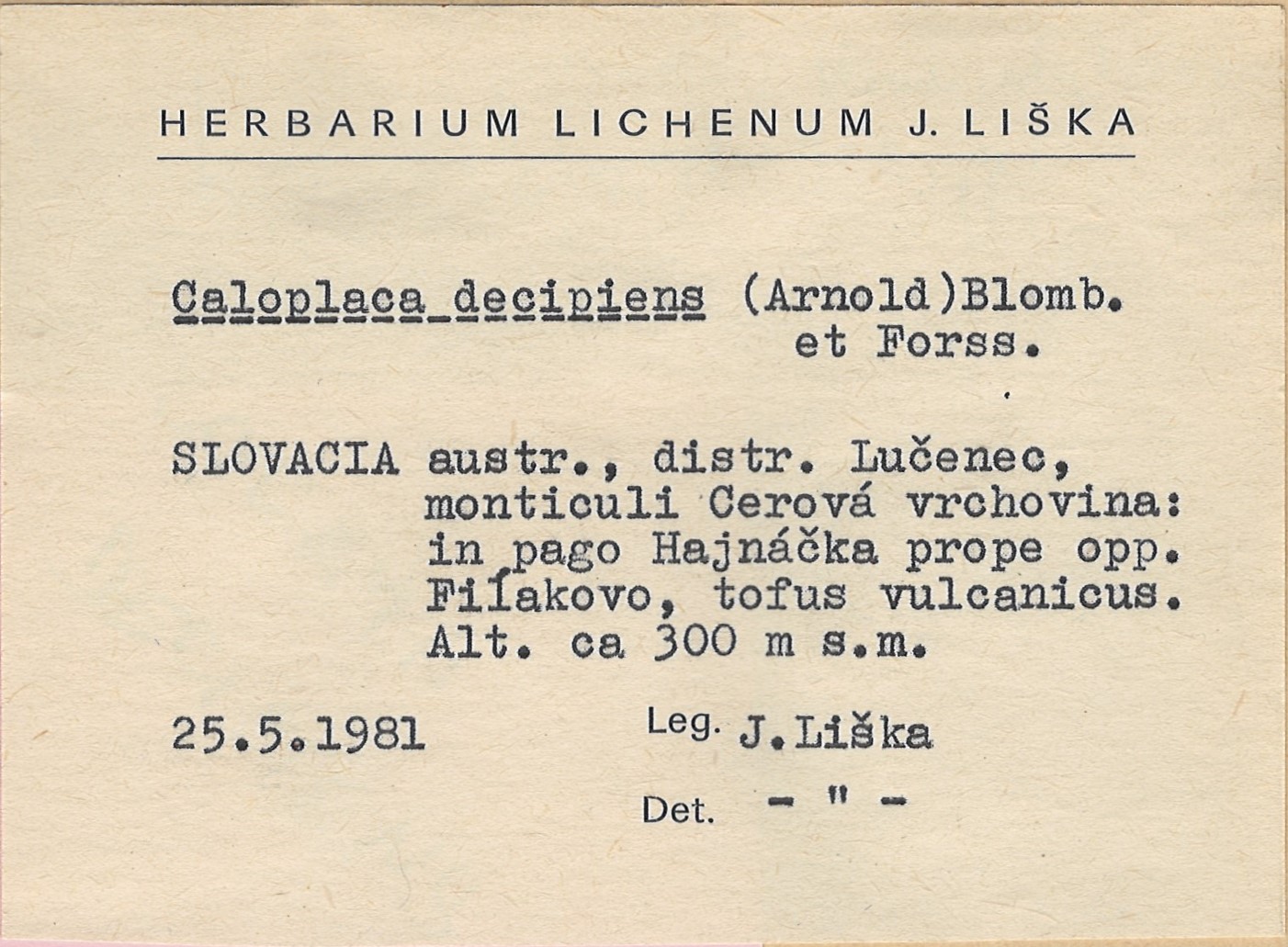 - Herbarium Lichenum J. Liška