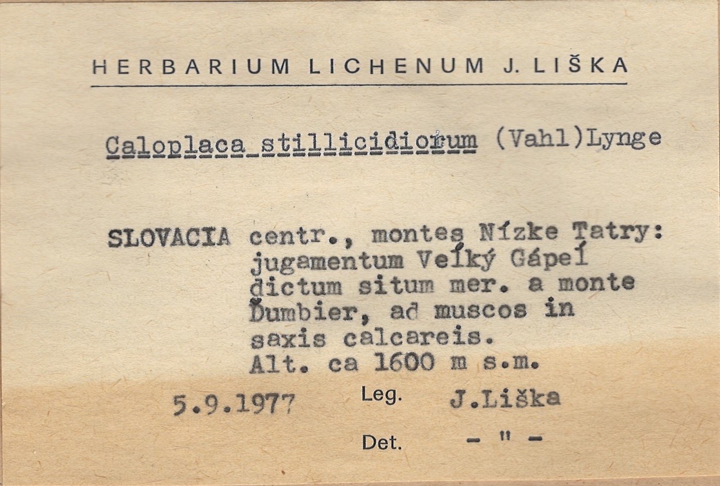 - Herbarium Lichenum J. Liška