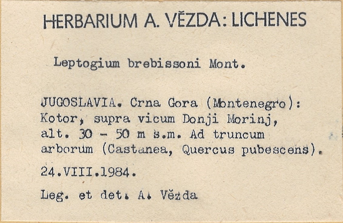 - Herbarium A. Vězda - duplicate in Herbarium Lichenum J. Liška