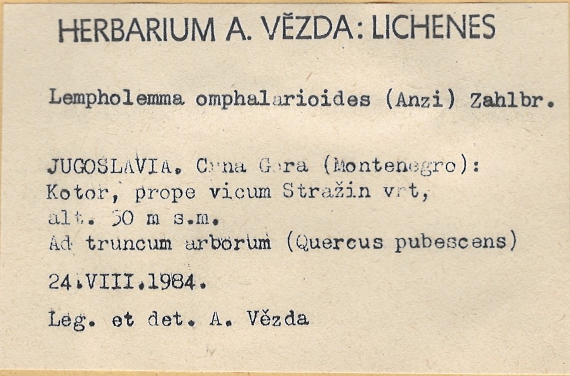 - Herbarium A. Vězda - duplicate in Herbarium Lichenum J. Liška