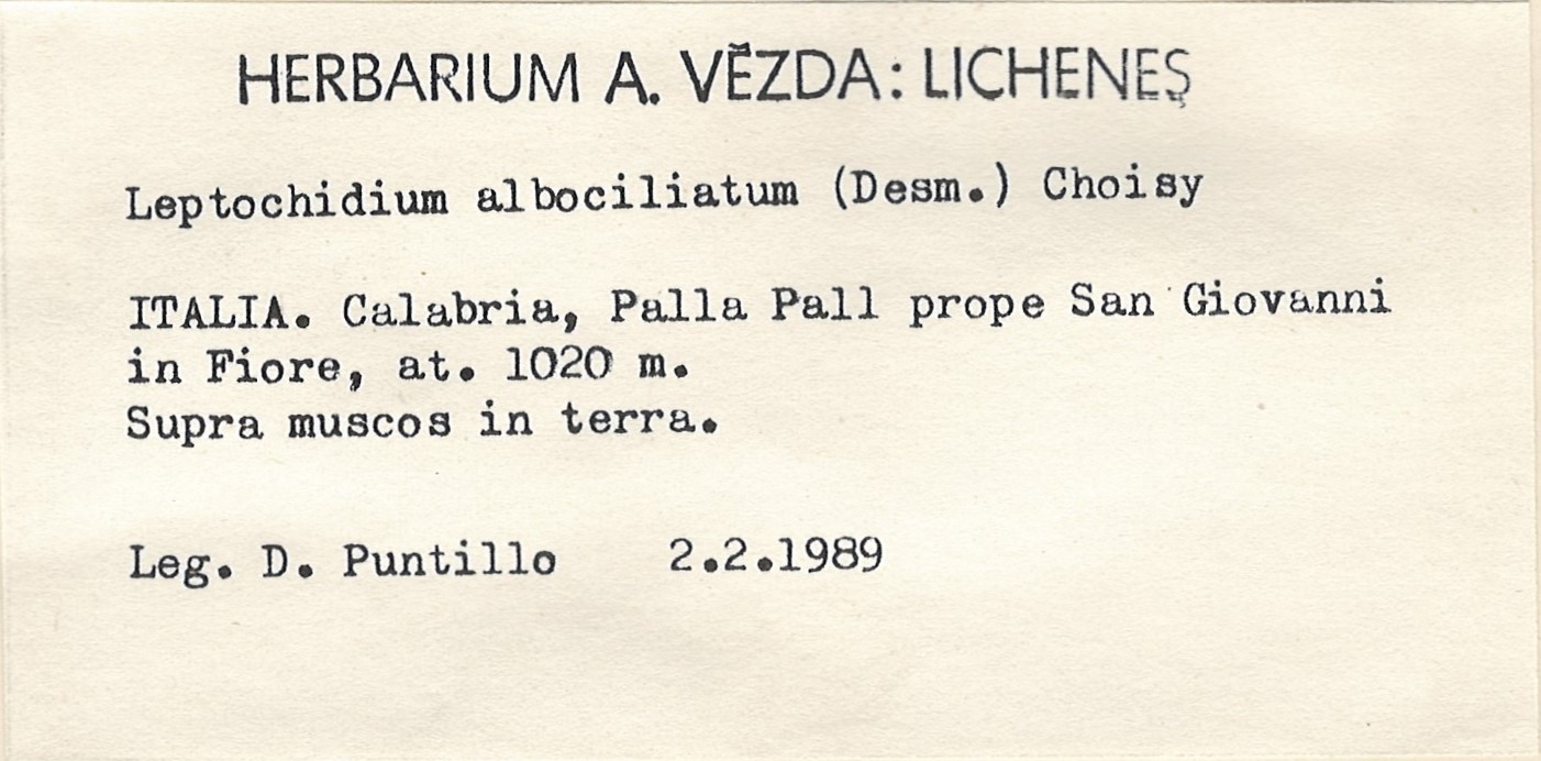 - Herbarium A. Vězda - duplicate in Herbarium Lichenum J. Liška