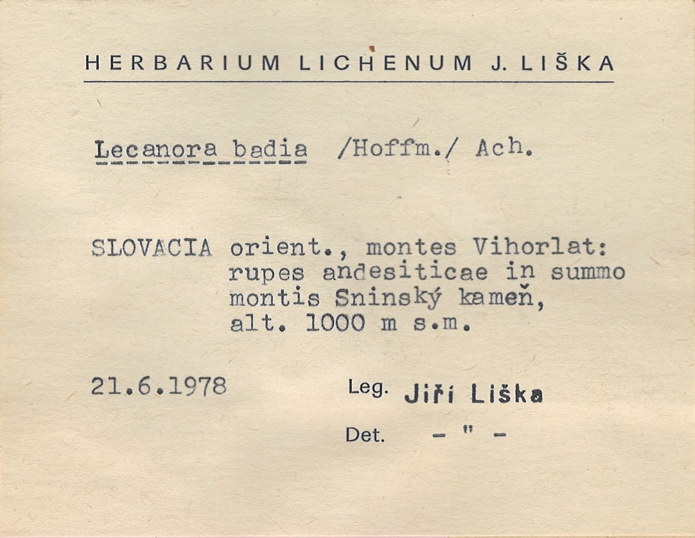- Herbarium Lichenum J. Liška