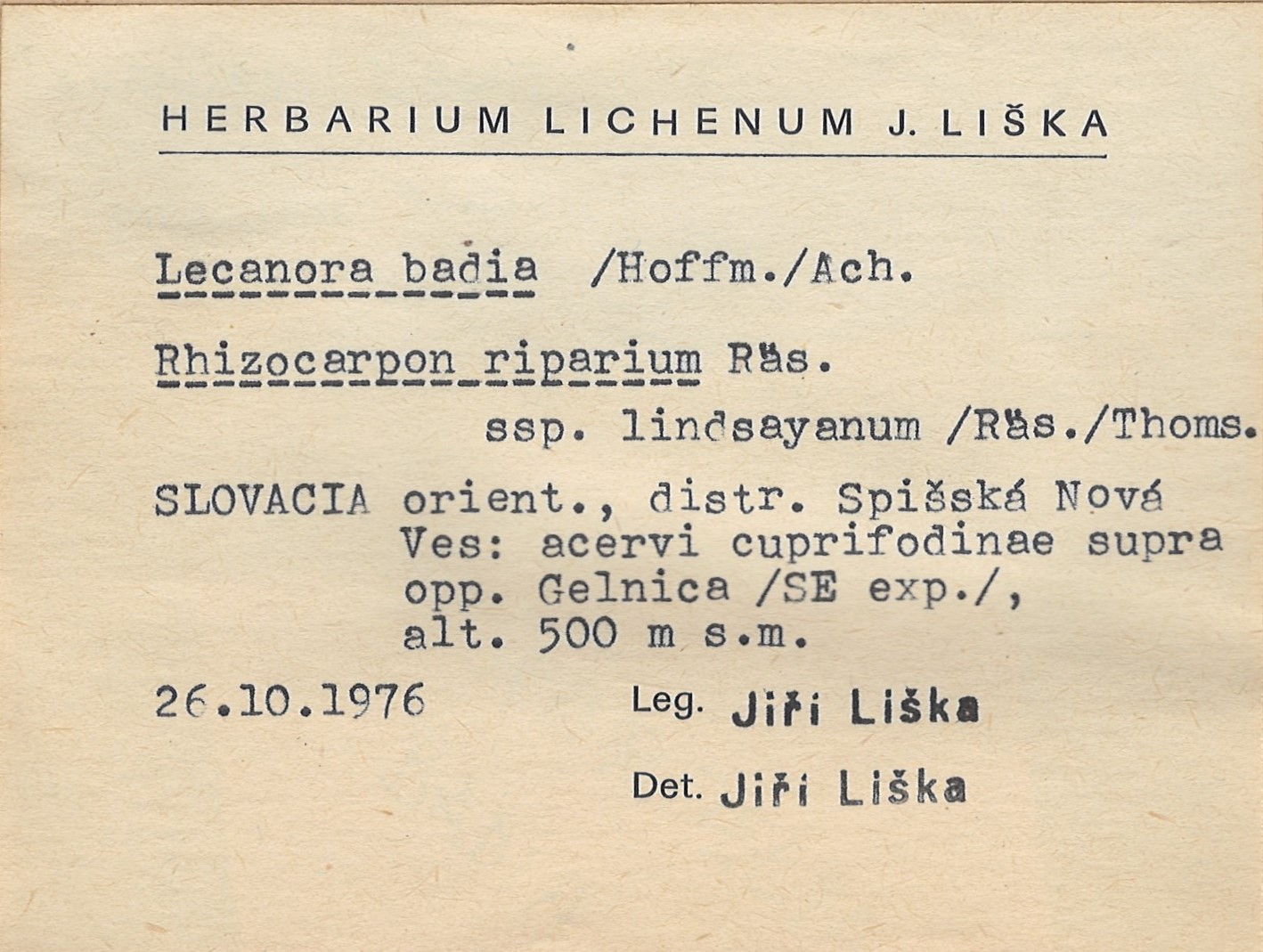 - Herbarium Lichenum J. Liška