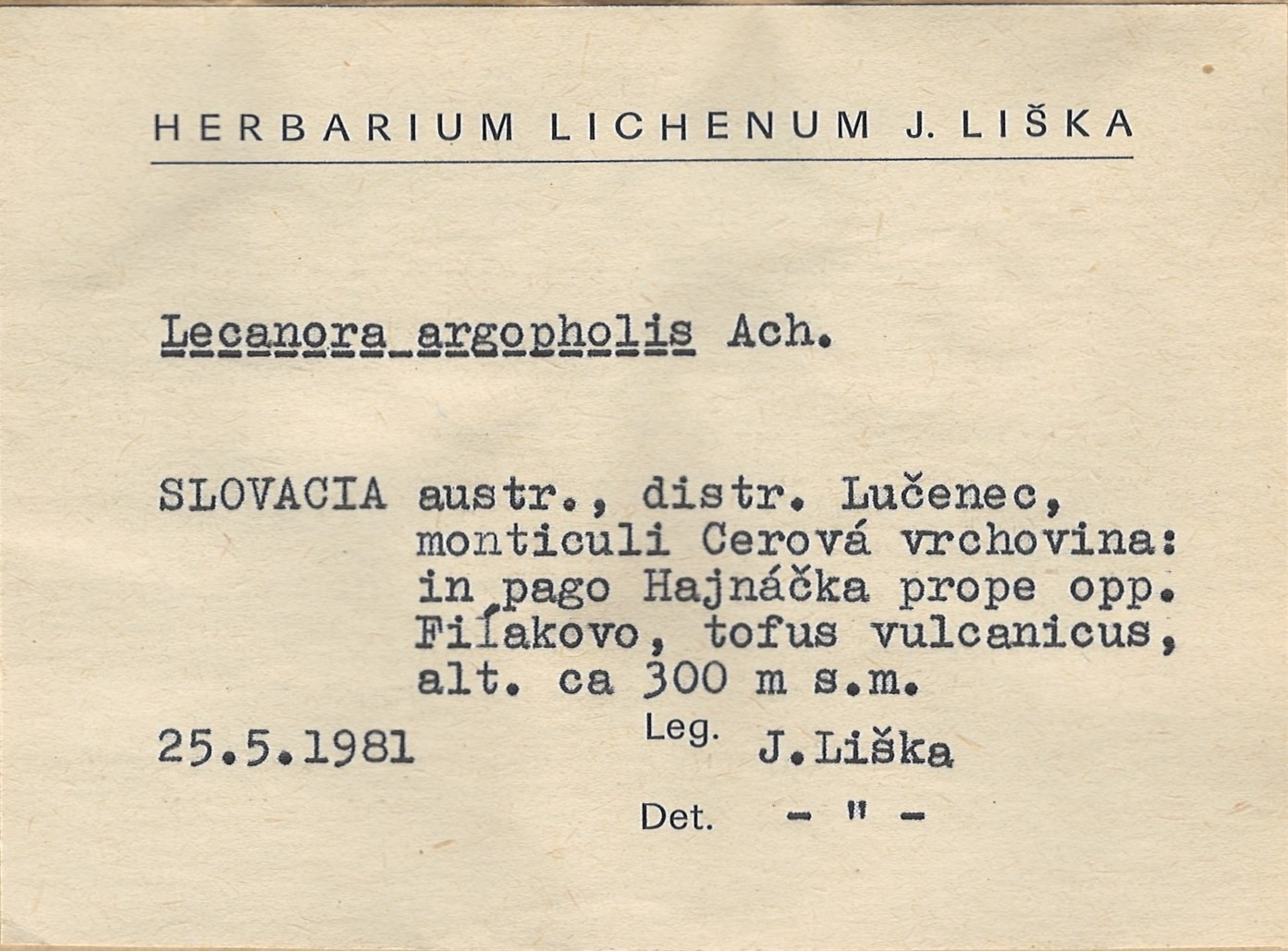 - Herbarium Lichenum J. Liška