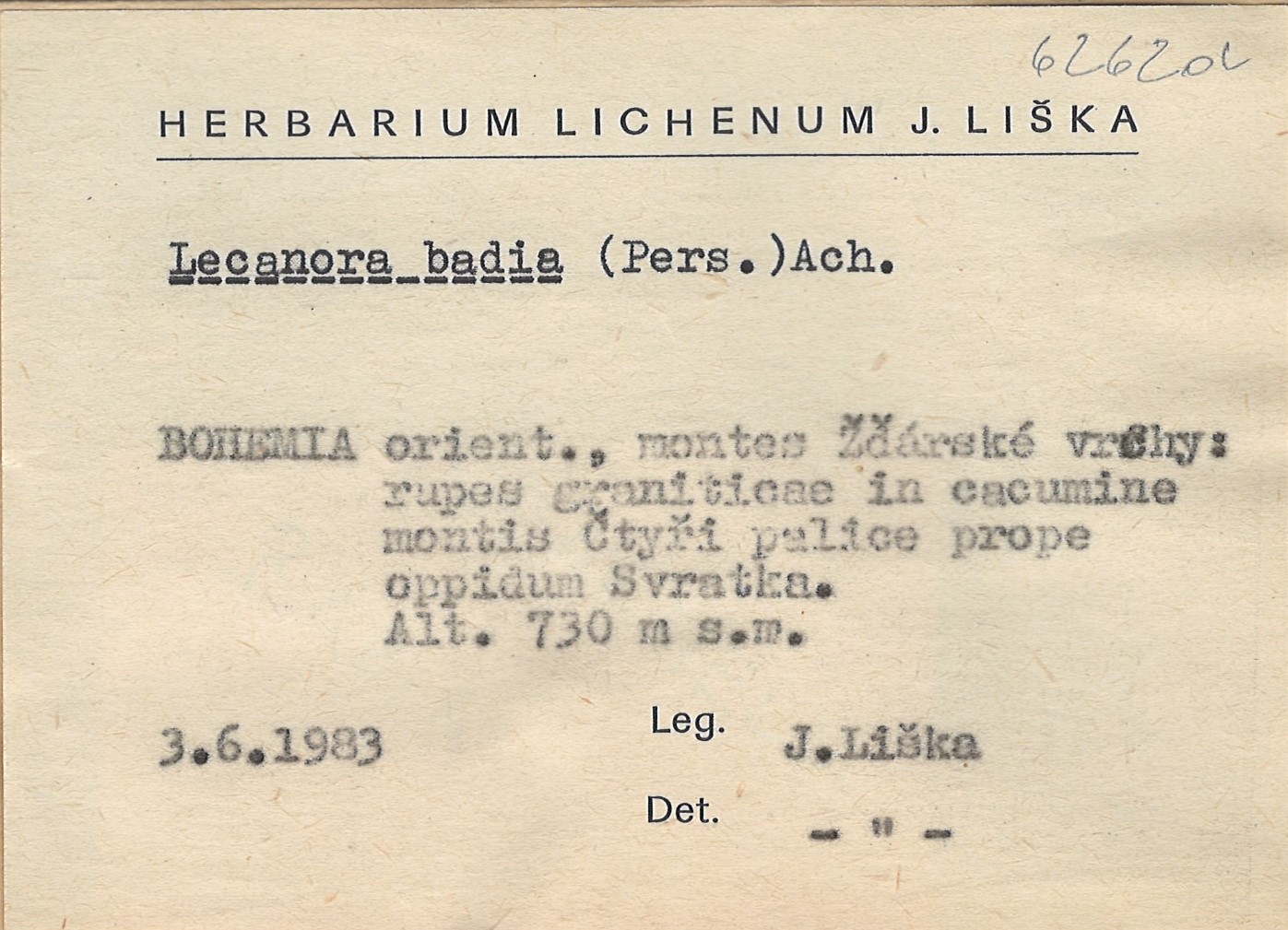- Herbarium Lichenum J. Liška