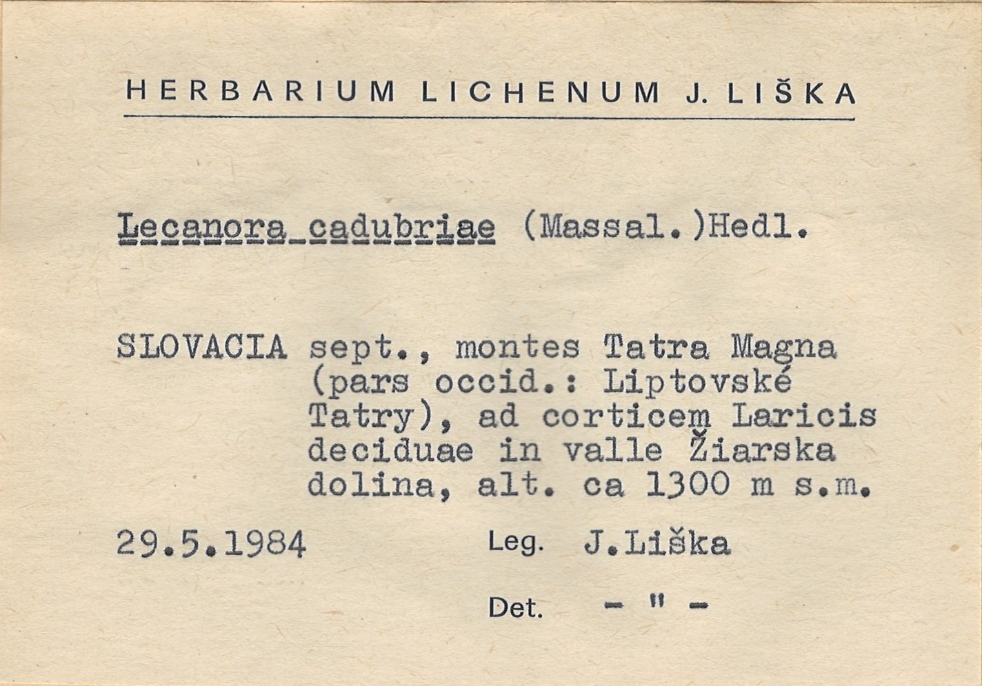 - Herbarium Lichenum J. Liška