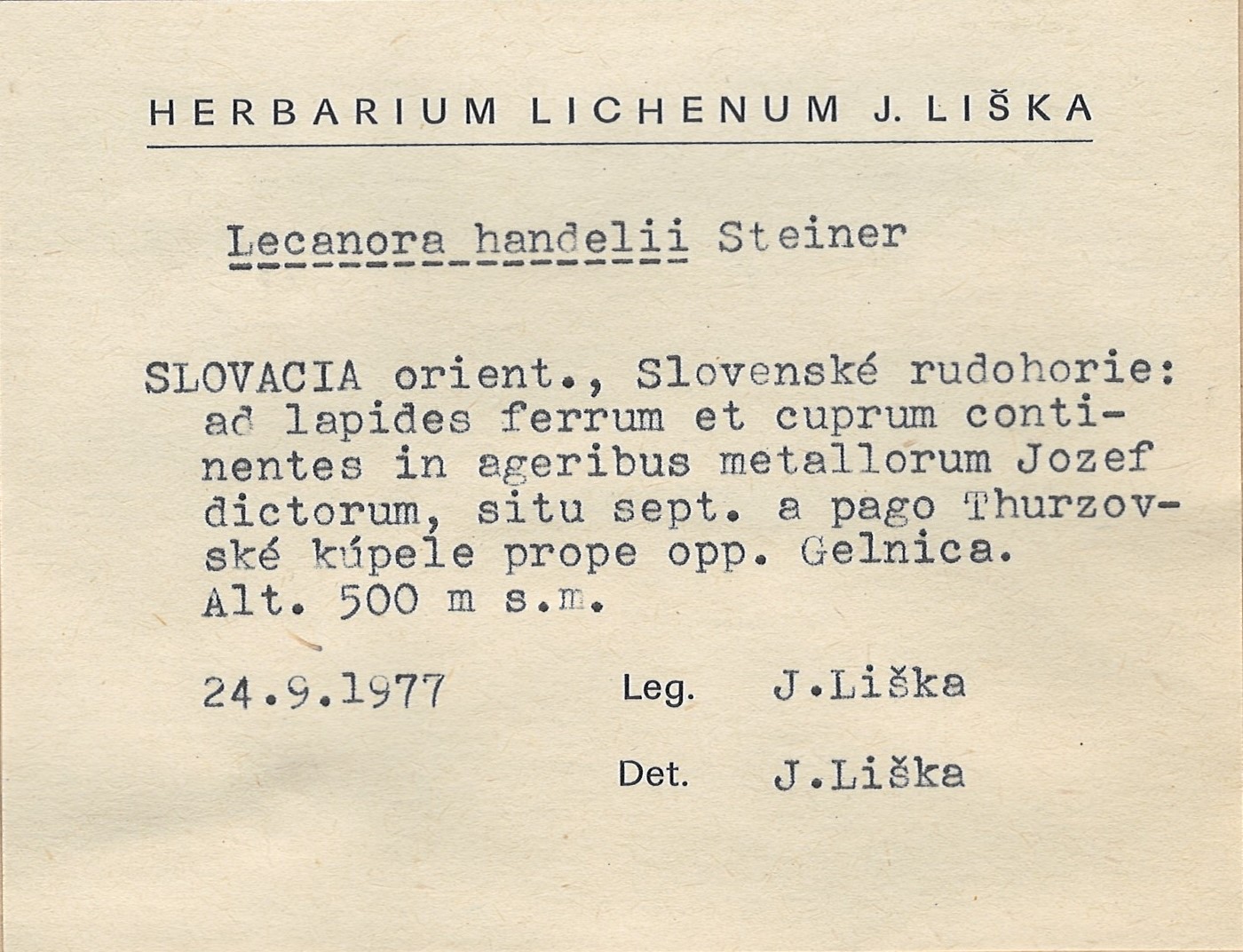 - Herbarium Lichenum J. Liška