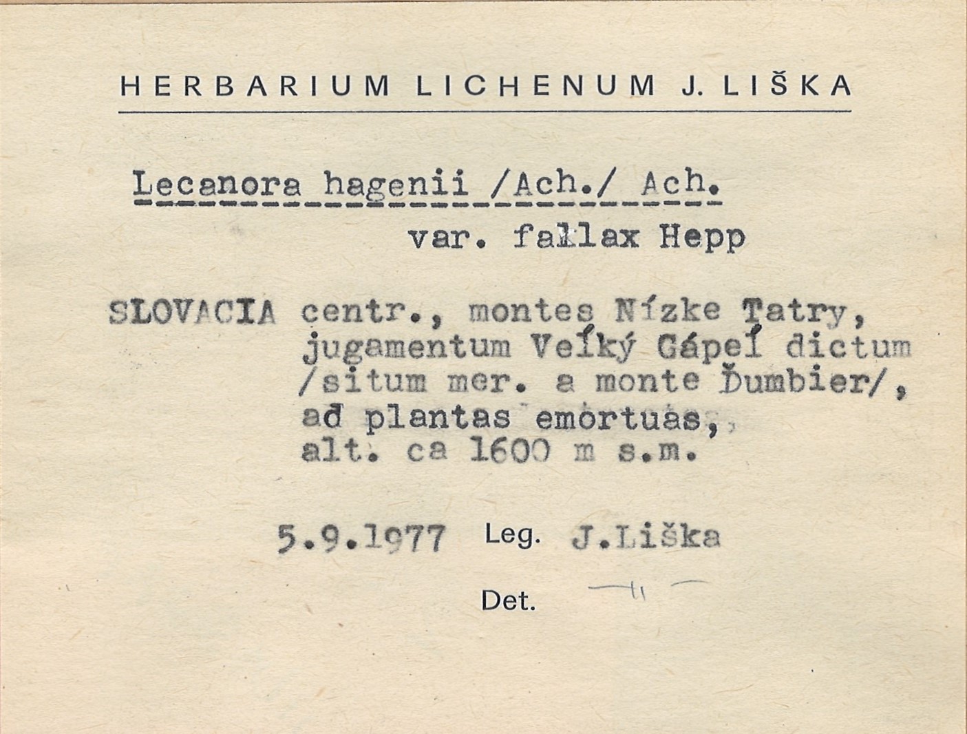 - Herbarium Lichenum J. Liška