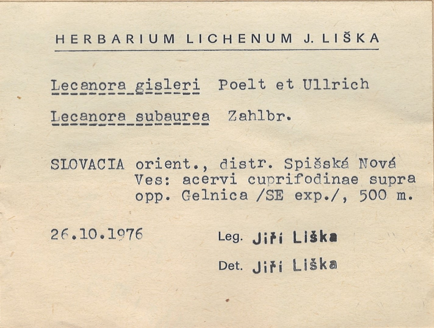 - Herbarium Lichenum J. Liška