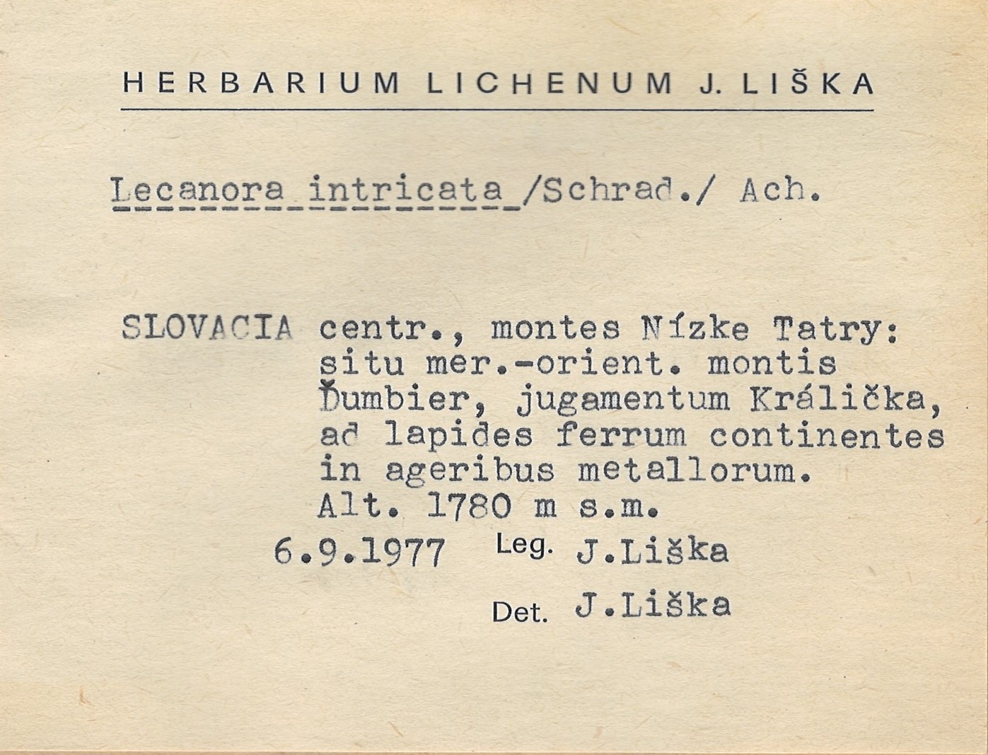 - Herbarium Lichenum J. Liška