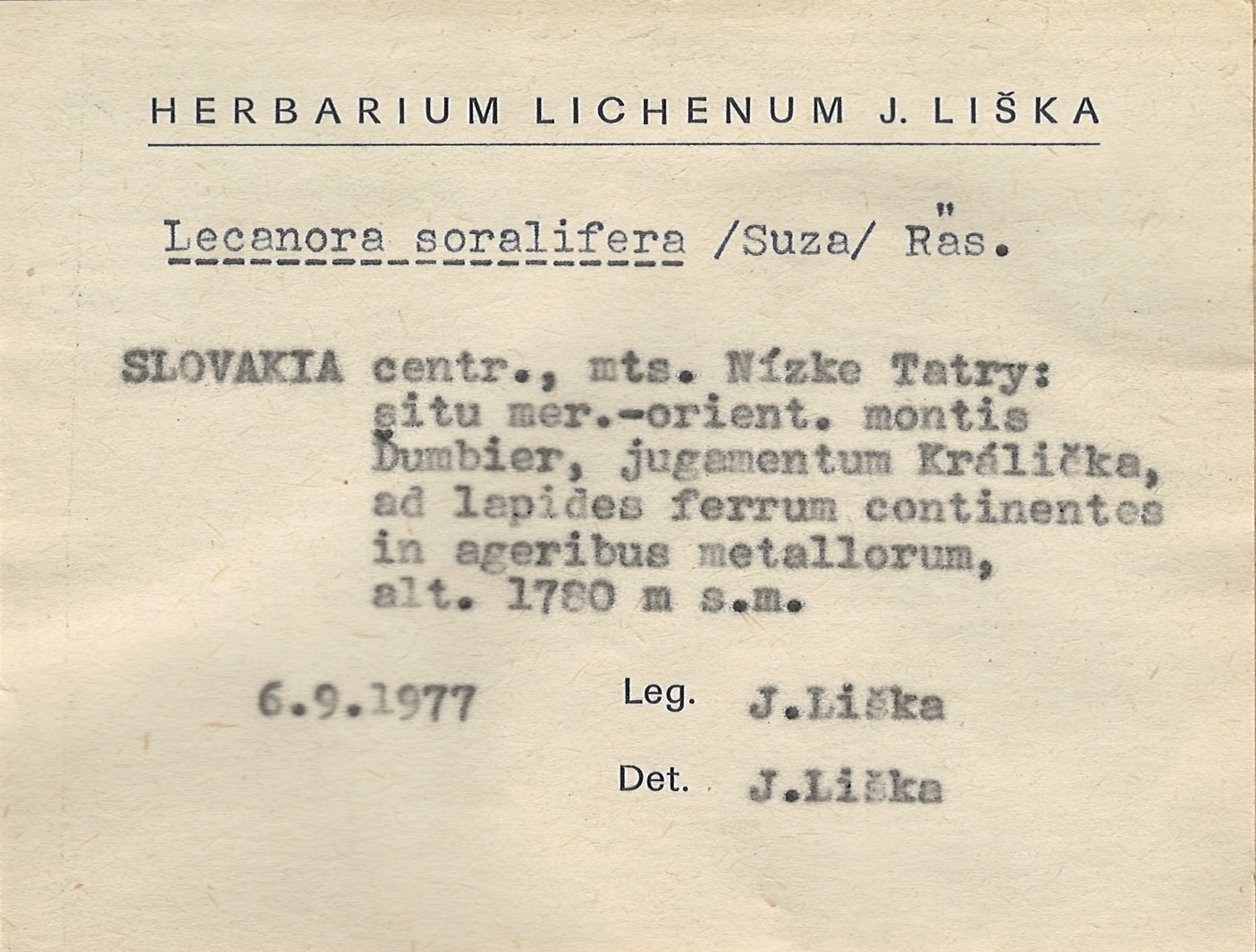 - Herbarium Lichenum J. Liška