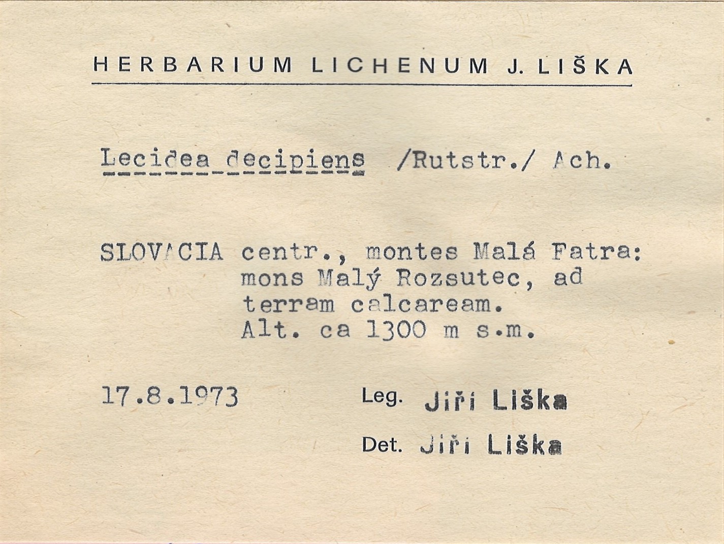 - Herbarium Lichenum J. Liška