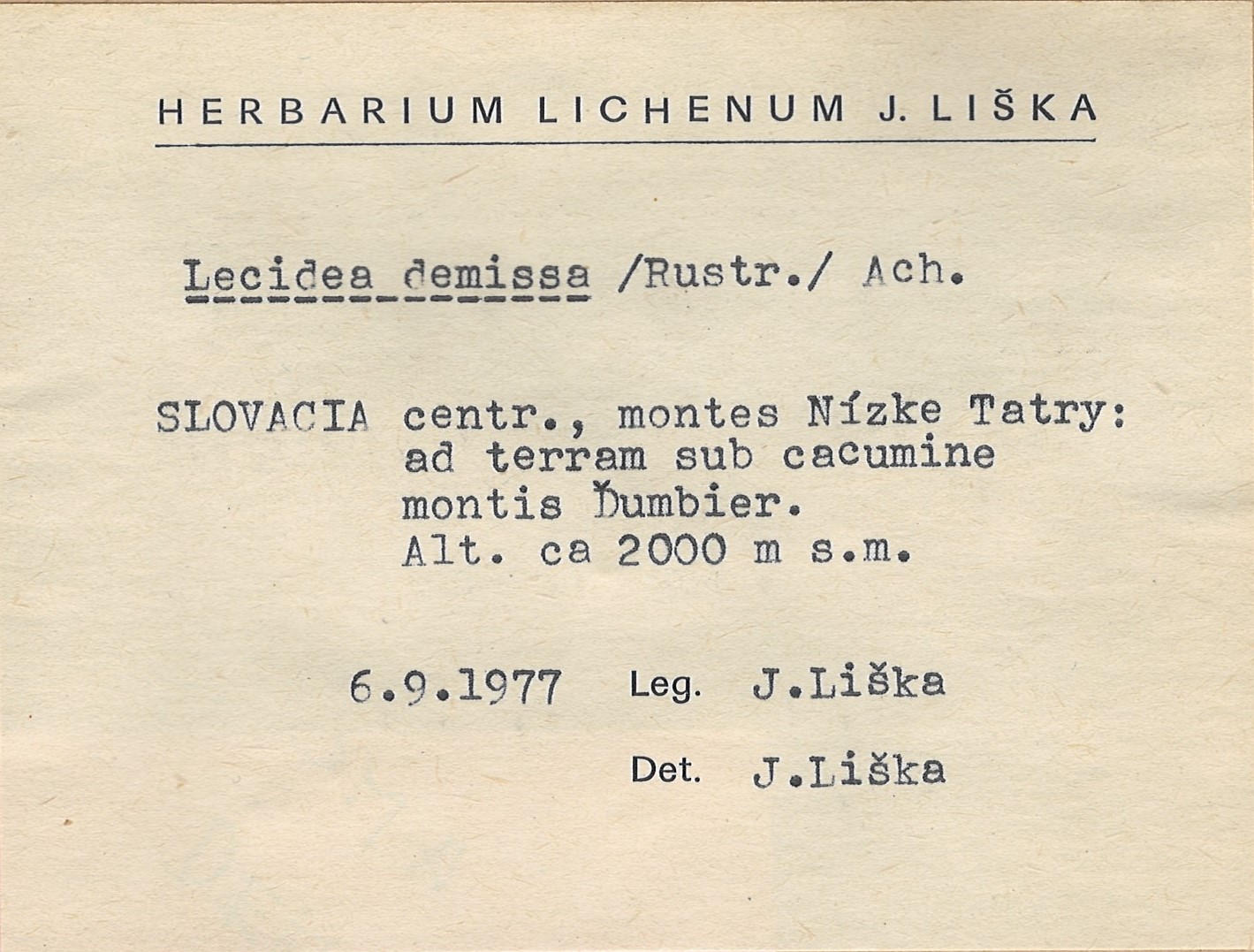 - Herbarium Lichenum J. Liška