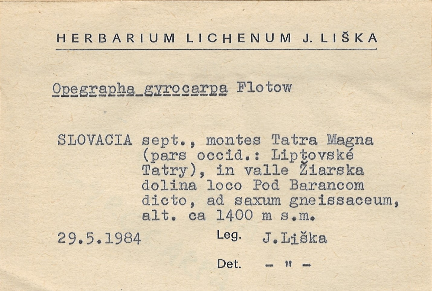 - Herbarium Lichenum J. Liška