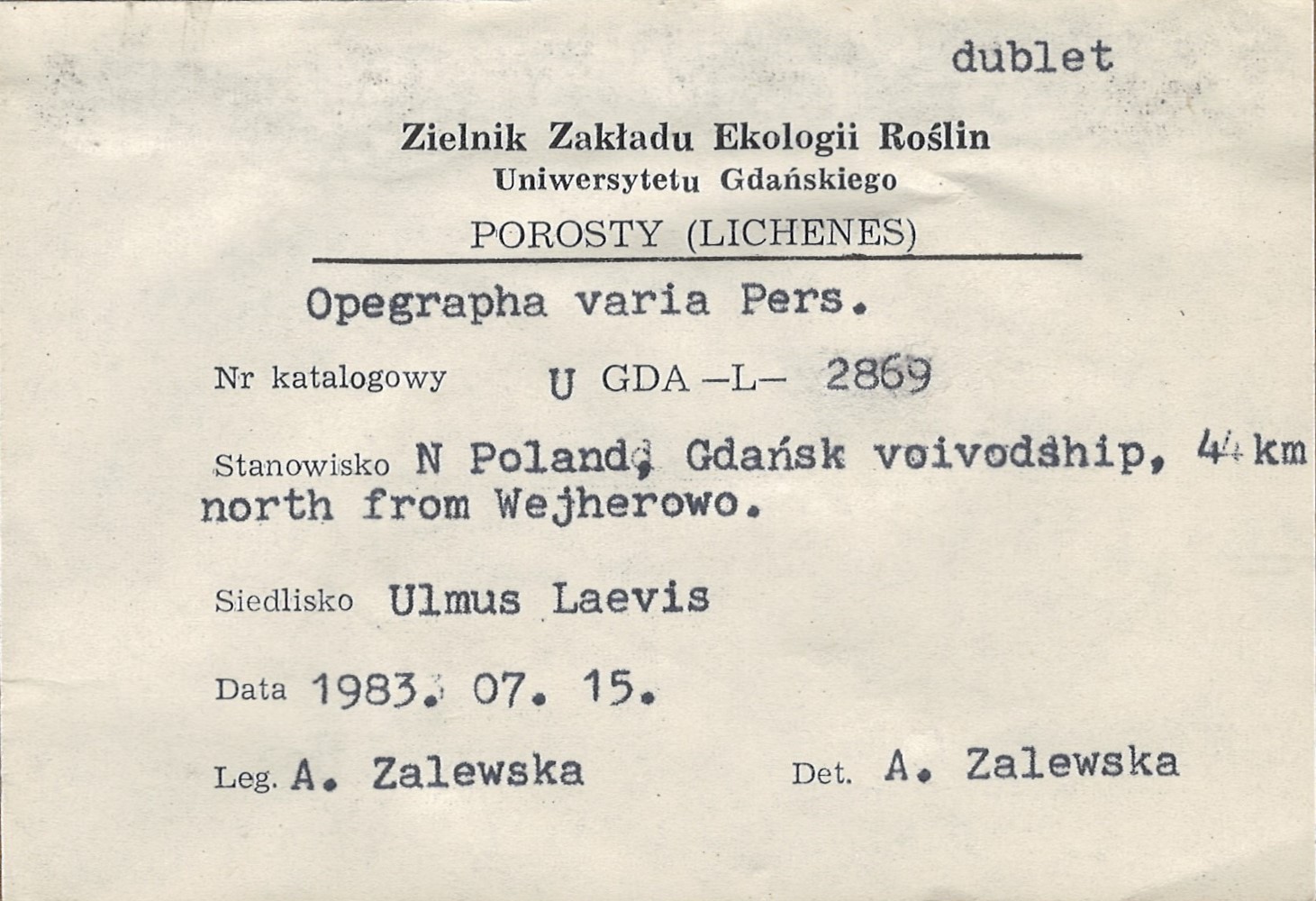 - Notes - specimen (NOT printed on the scheda)