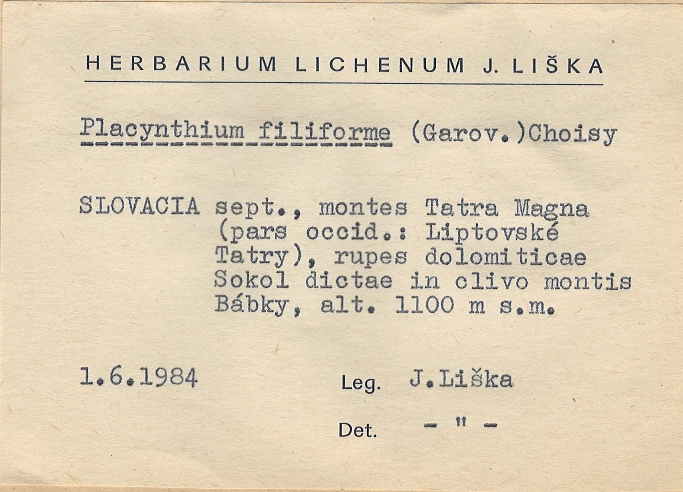 - Herbarium Lichenum J. Liška