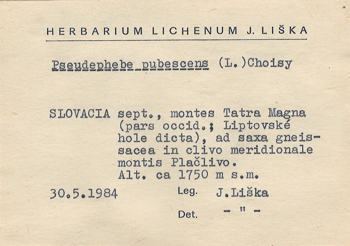 - Herbarium Lichenum J. Liška