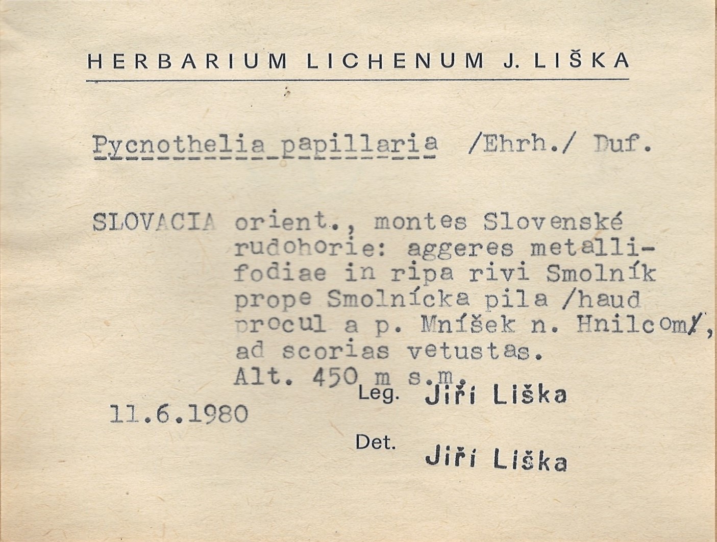 - Herbarium Lichenum J. Liška