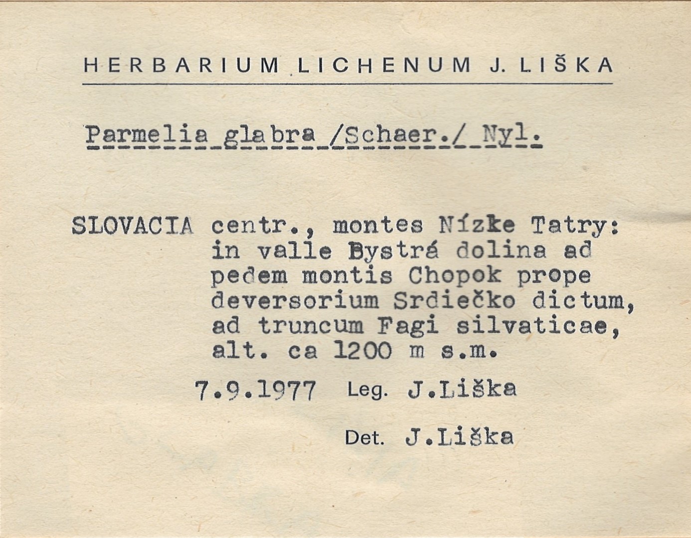 - Herbarium Lichenum J. Liška