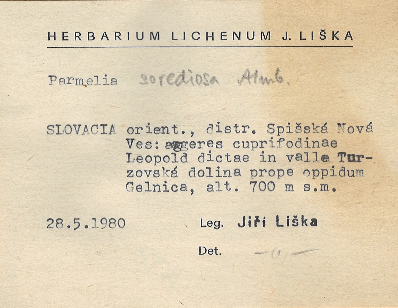 - Herbarium Lichenum J. Liška