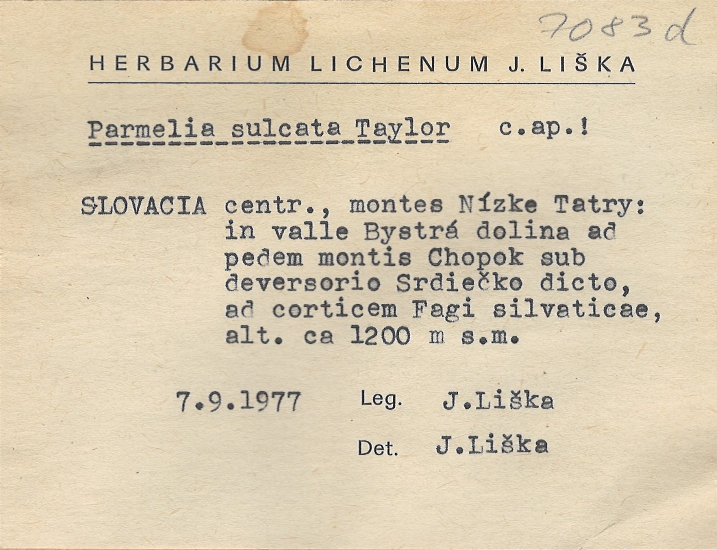 - Herbarium Lichenum J. Liška