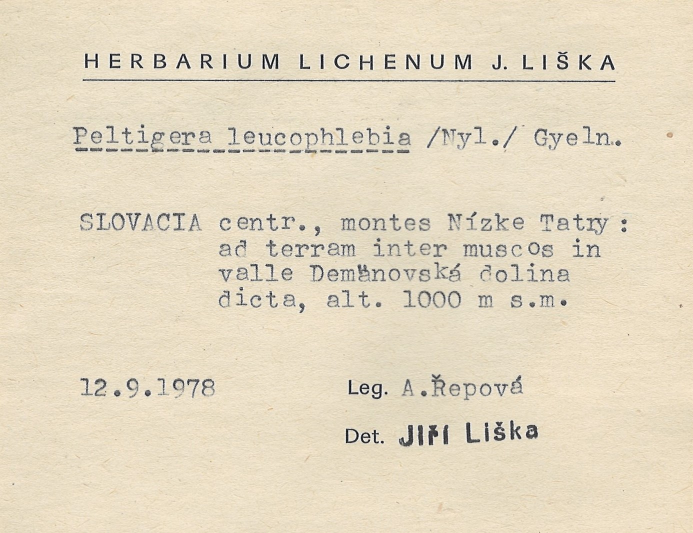- Herbarium Lichenum J. Liška