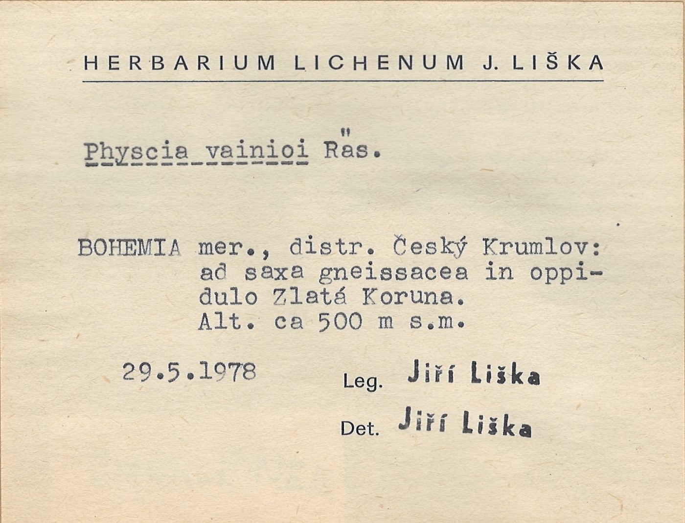 - Herbarium Lichenum J. Liška