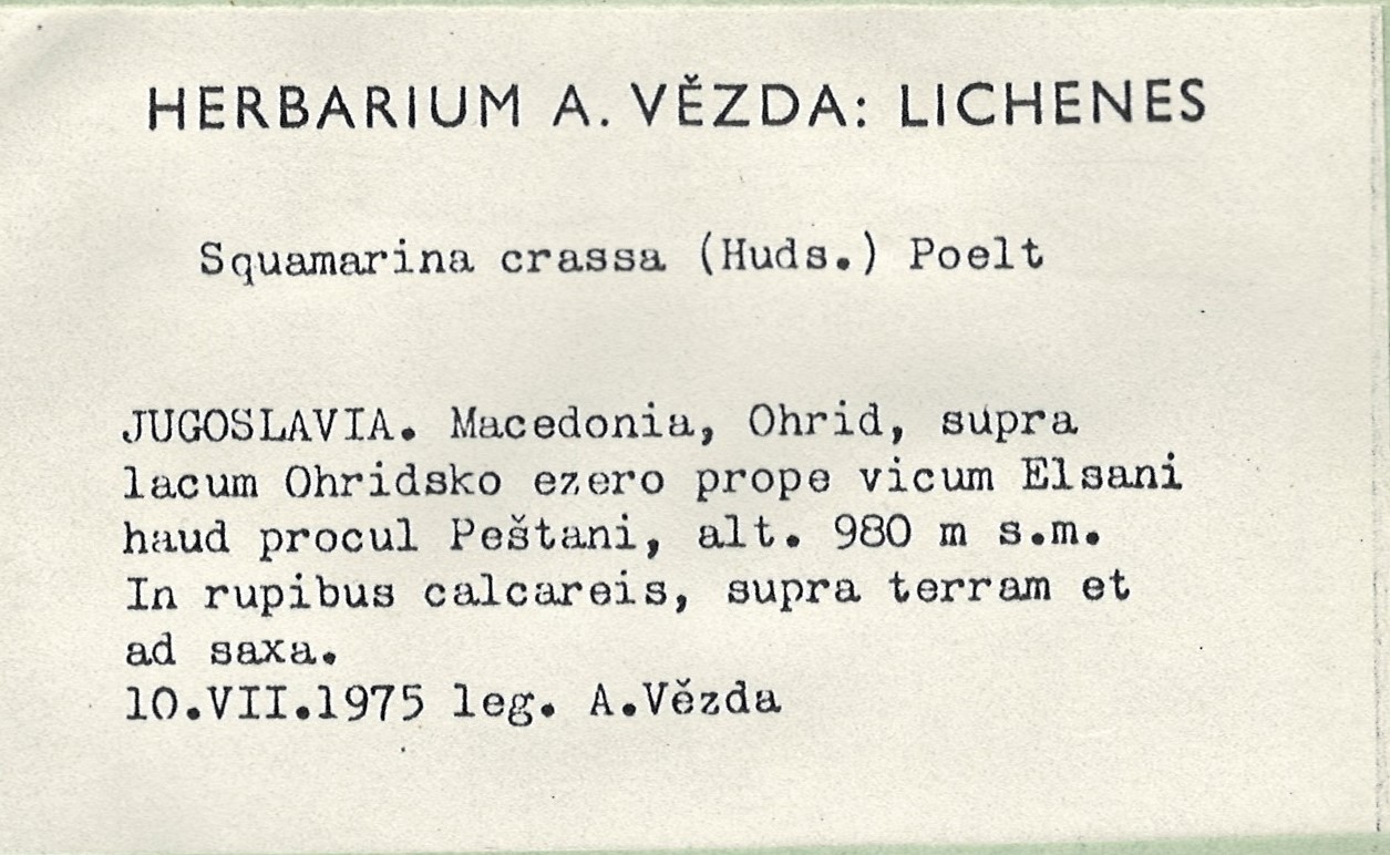 - Herbarium A. Vězda - duplicate in Herbarium Lichenum J. Liška