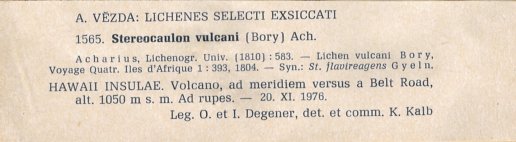 - Herbarium A. Vězda - duplicate in Herbarium Lichenum J. Liška