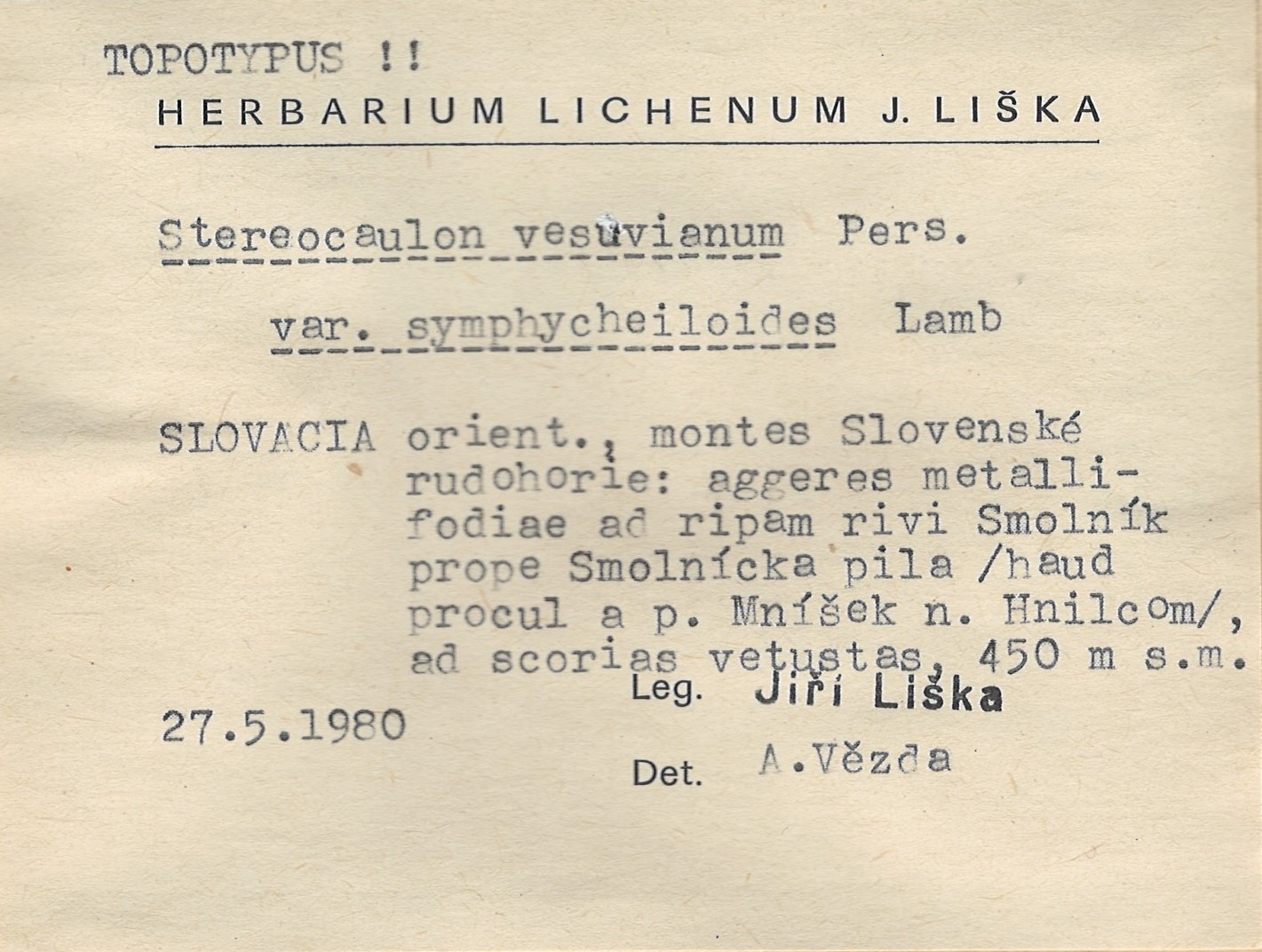 - Herbarium Lichenum J. Liška
