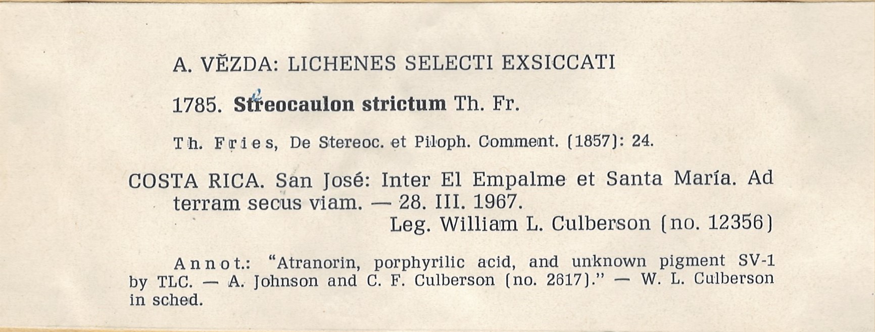 - Herbarium A. Vězda - duplicate in Herbarium Lichenum J. Liška