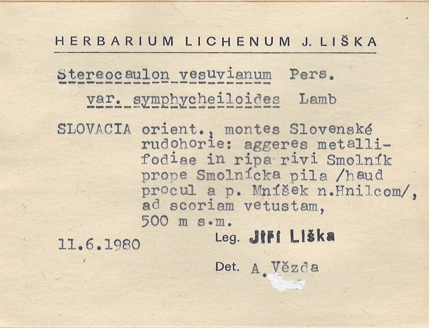 - Herbarium Lichenum J. Liška