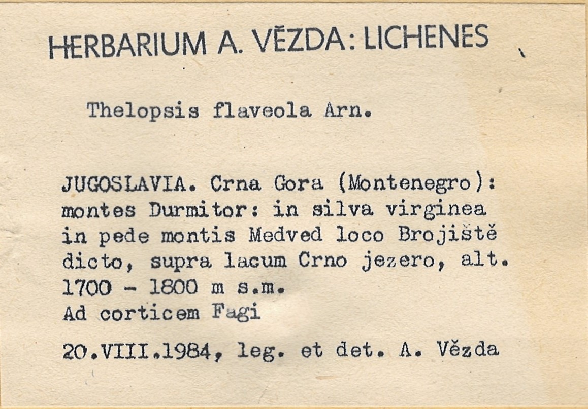 - Herbarium A. Vězda - duplicate in Herbarium Lichenum J. Liška