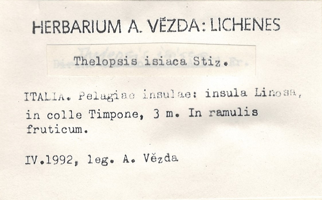 - Herbarium A. Vězda - duplicate in Herbarium Lichenum J. Liška