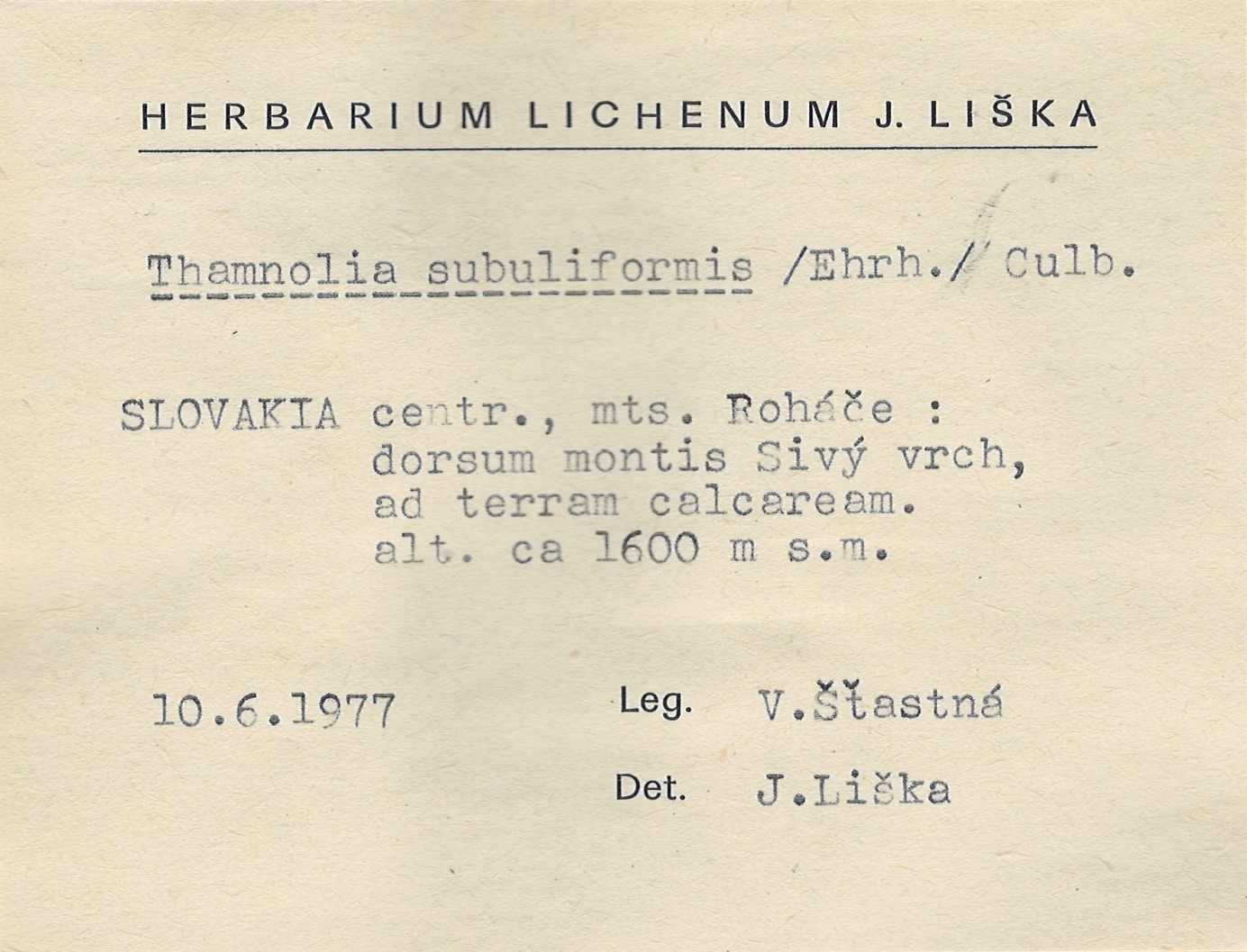 - Herbarium Lichenum J. Liška