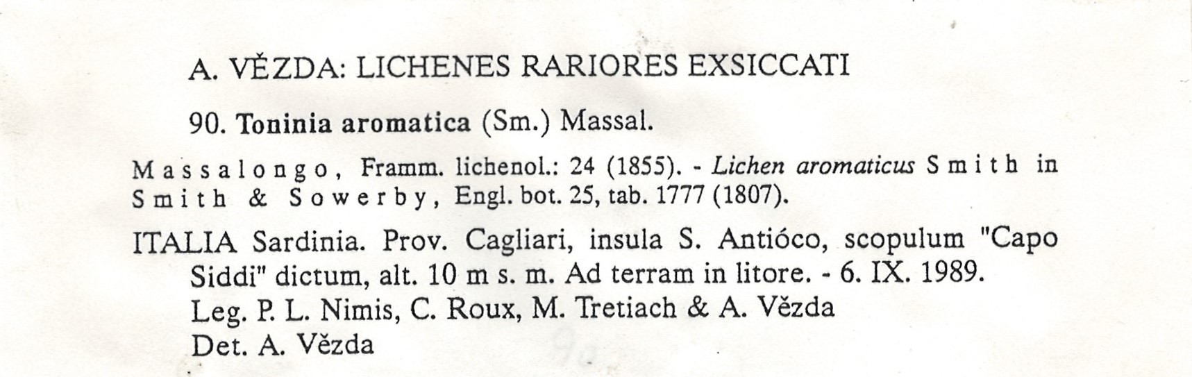 - Herbarium A. Vězda - duplicate in Herbarium Lichenum J. Liška