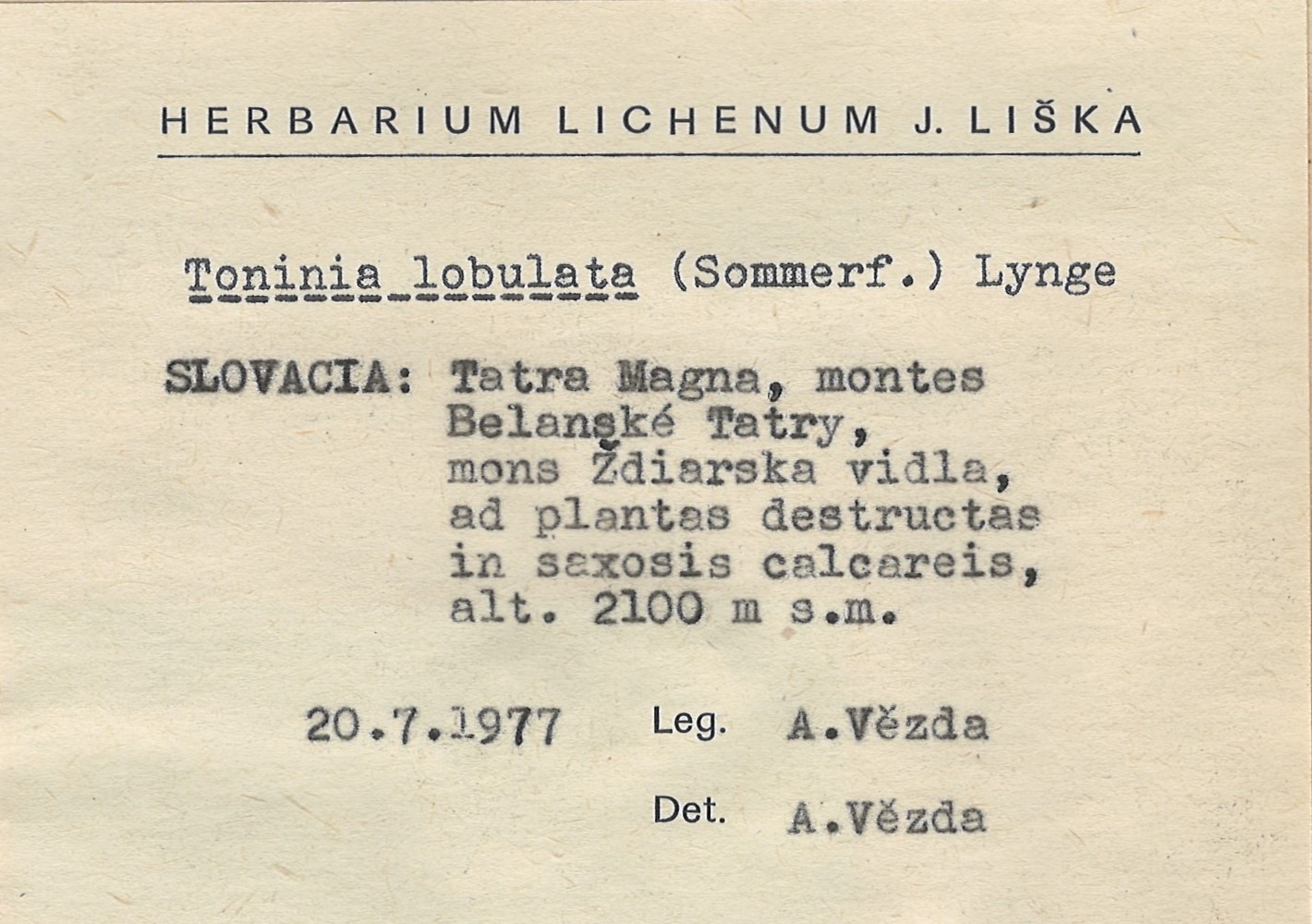 - Herbarium Lichenum J. Liška