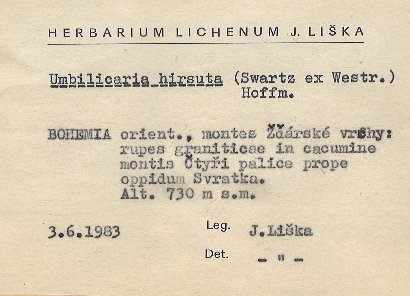 - Herbarium Lichenum J. Liška