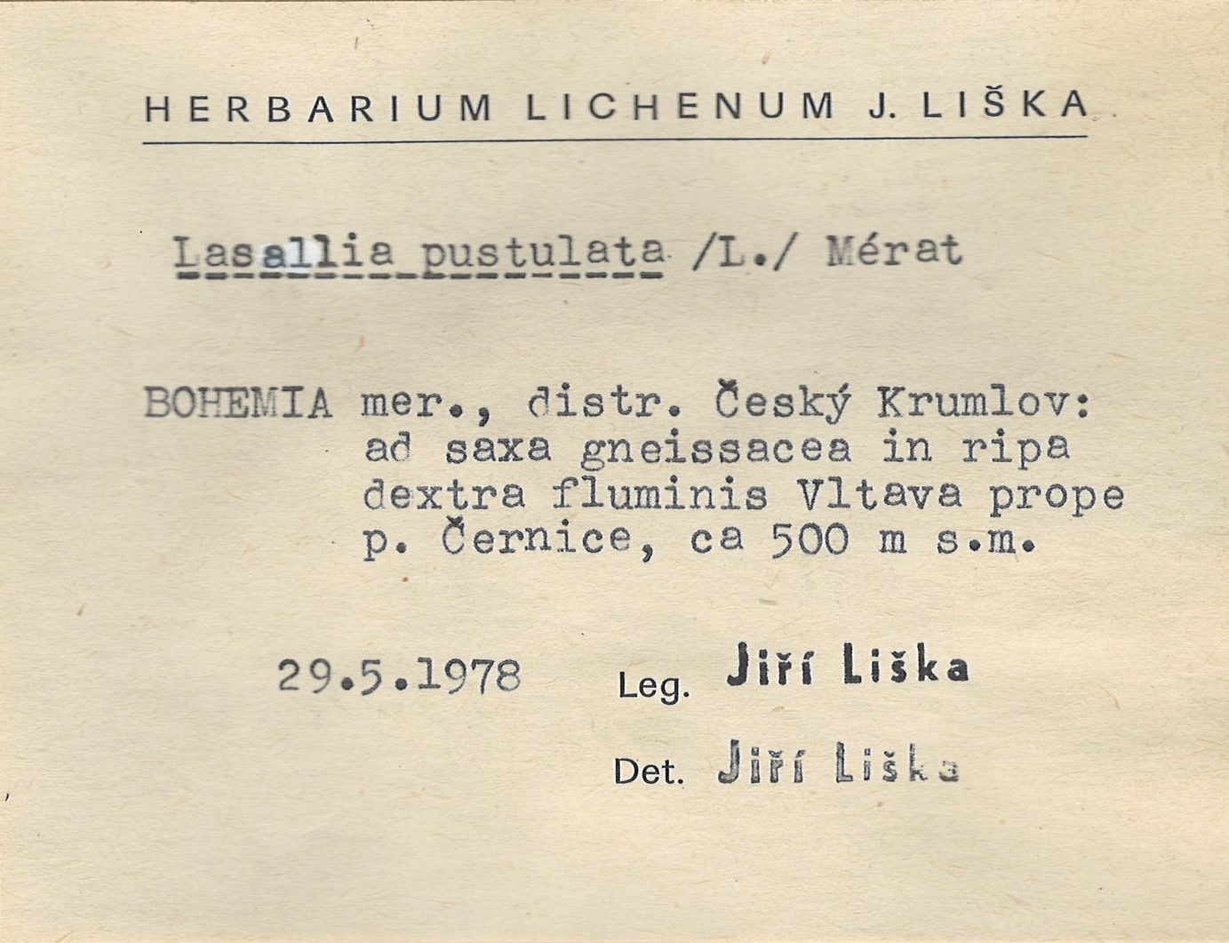 - Herbarium Lichenum J. Liška