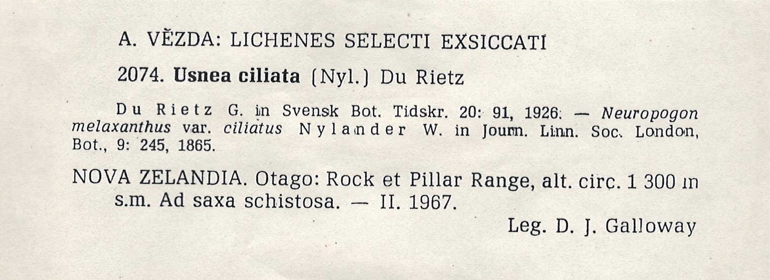 - Herbarium A. Vězda - duplicate in Herbarium Lichenum J. Liška