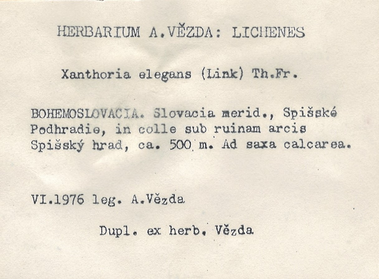 - Herbarium A. Vězda - duplicate in Herbarium Lichenum J. Liška