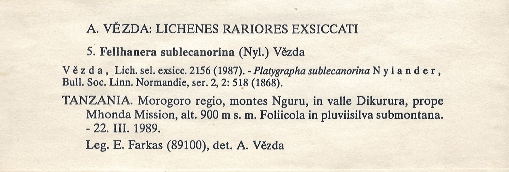 - Herbarium A. Vězda - duplicate in Herbarium Lichenum J. Liška