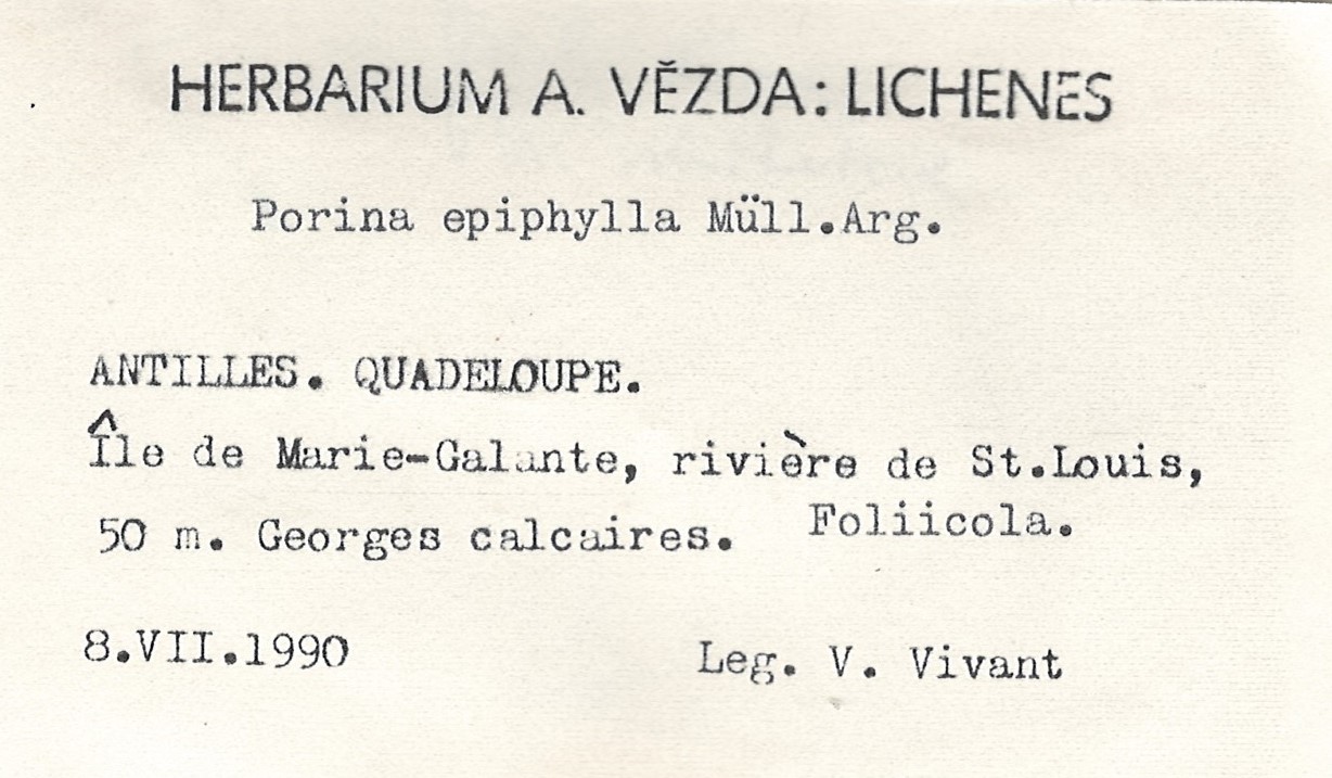 - Herbarium A. Vězda - duplicate in Herbarium Lichenum J. Liška