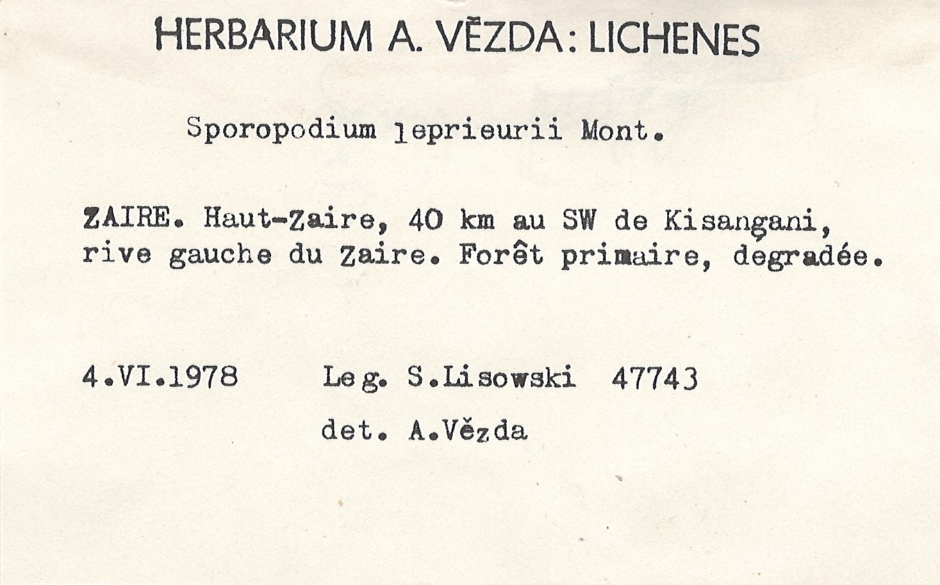 - Herbarium A. Vězda - duplicate in Herbarium Lichenum J. Liška