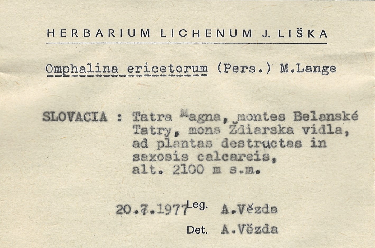- Herbarium Lichenum J. Liška